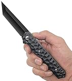Unlike the Ganzo knife, this one features a quick-draw system, including flipper opening technology that will allow you to put it to use in a matter of few seconds. Along with that, the frame lock system ensures the safety of this knife. It comes with a comfortable G10 handle as well that allows for a non-slip grip. Maybe the most important thing is that you can lace it to your vest, keychains, or simply slip it in your pocket.